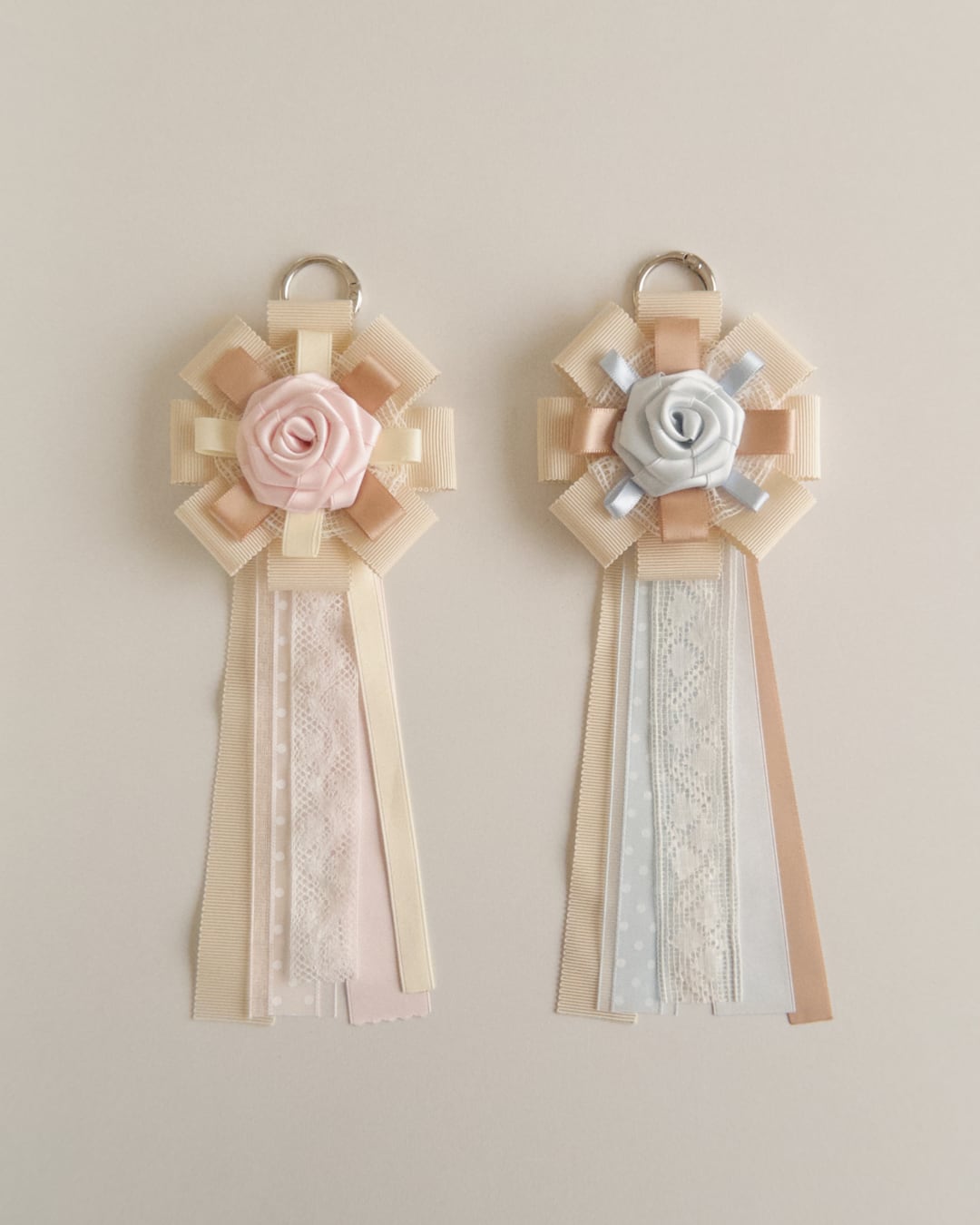 ピンとカラビナ付きで、お洋服にもバッグにもお使いいただける2way使用になっています。